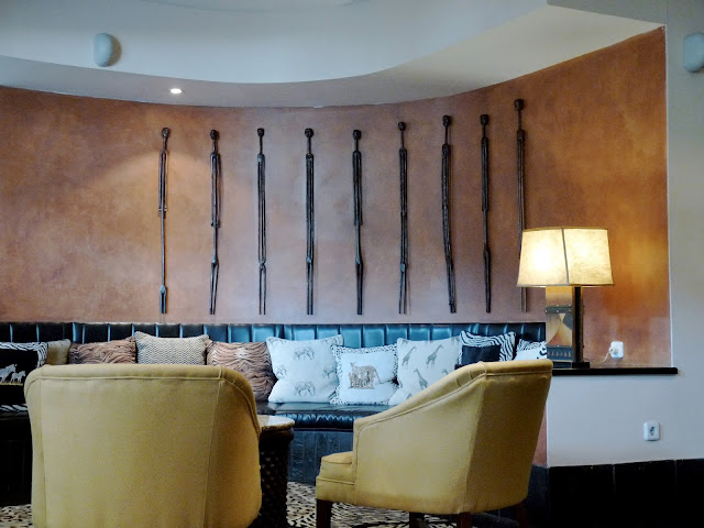 No tempo antes da independência o prédio (ou parte dele) foi utilisado como messe da Força Aérea. Suponho que estas decorações são ainda desse tempo (antes de 1975).