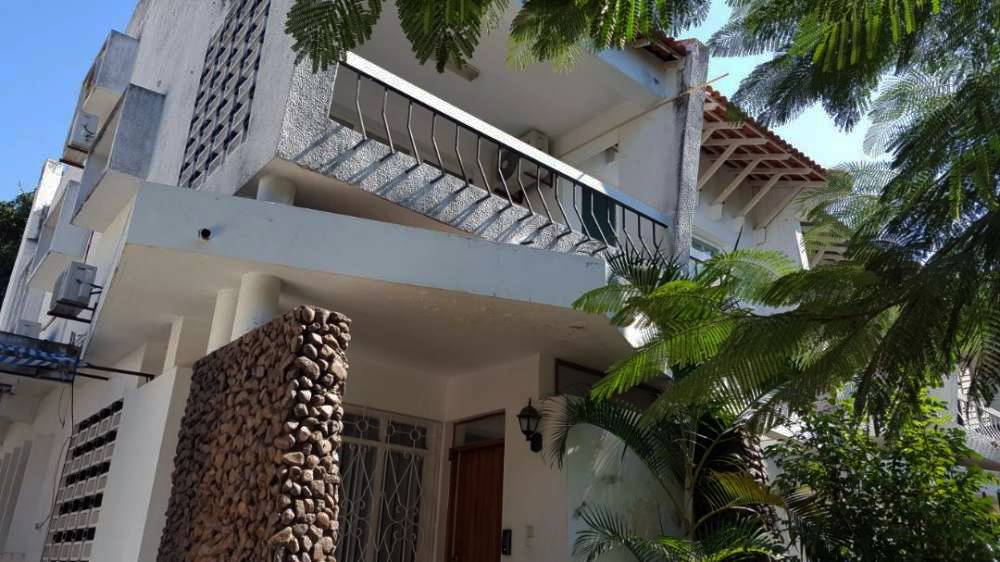 Esta vivenda fica na Av. Tivane, antiga Couceiro da Costa na Polana. Se eu tivesse a certeza que os godos/seixos são de origem (parecem estar demasiadamente limpos para o ser e grandes demais para se integrarem bem no resto) e olhando para o telhado com estrutura de madeira diria que a casa é dos projectos perdidos dum tal arquitecto PG. Assim é mais seguro não dizer nada.